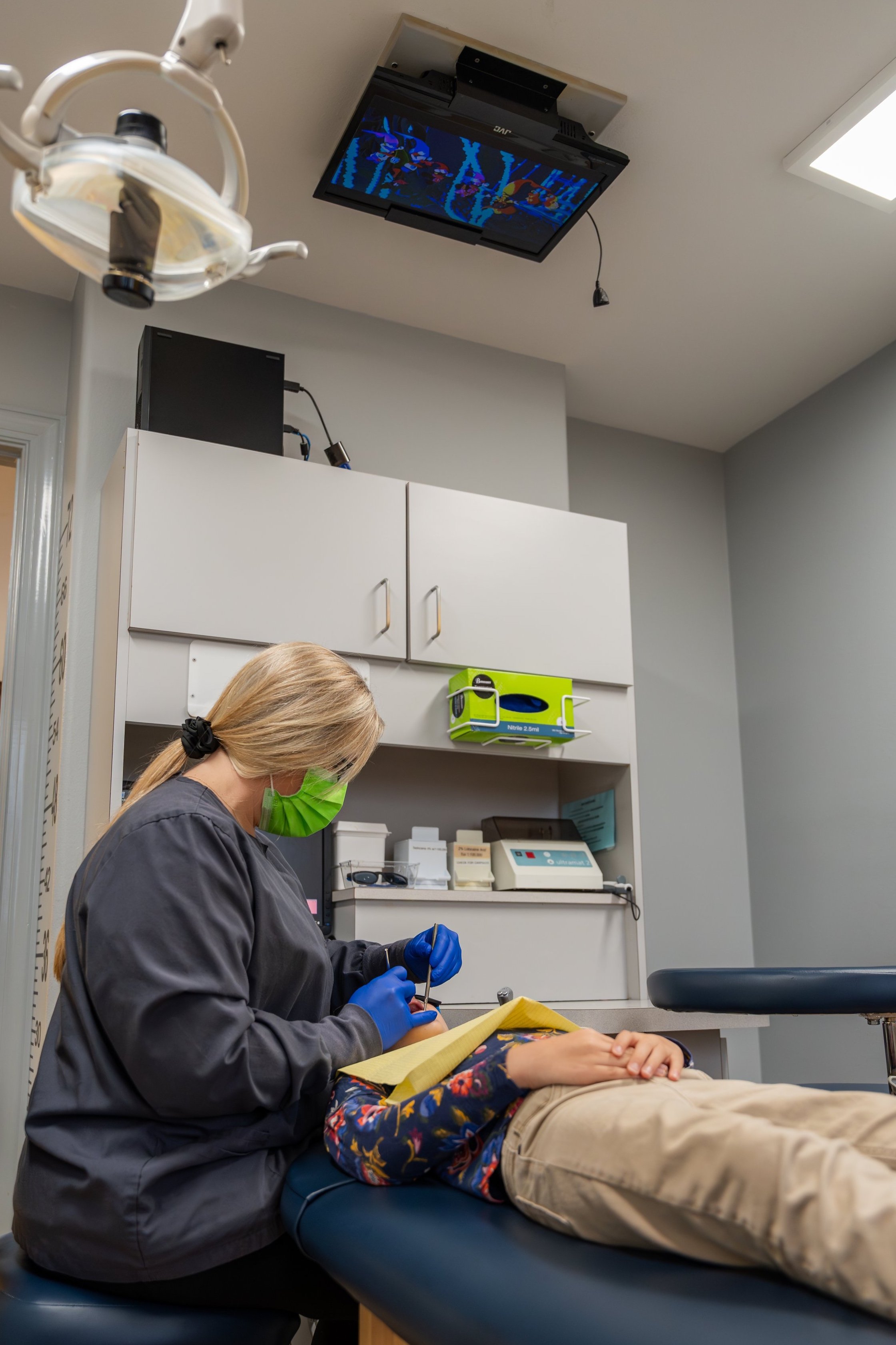 We created the kind of dental office we wish we had as kids! Your child can become the conductor of their check-up with the fun trains in our waiting room. We also have cartoons on the ceiling-mounted televisions in our treatment rooms! There’s so much to smile about!